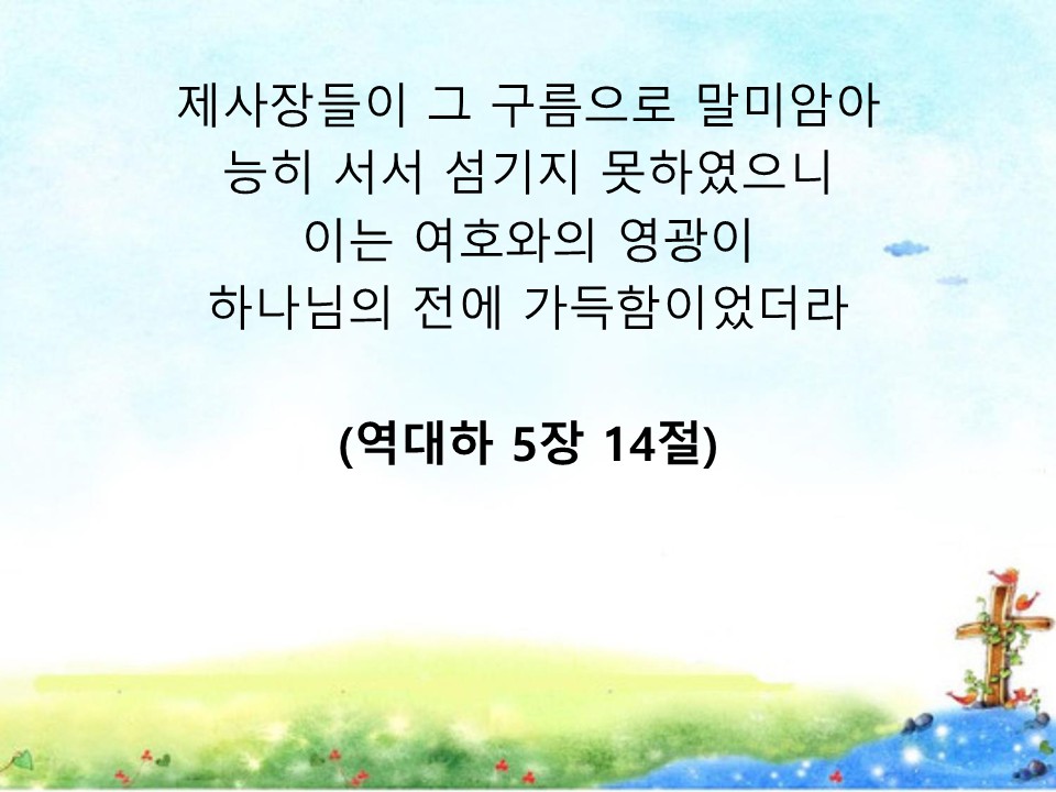 오늘을 살아가는 우리의 삶과 교회 공동체 안에도 구름같이 가득 임할 것입니다.
