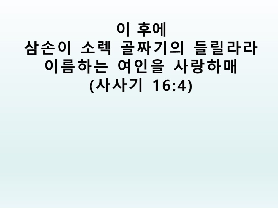 삼손이 소렉 골짜기의 들릴라라 이름하는 여인을 사랑하매
