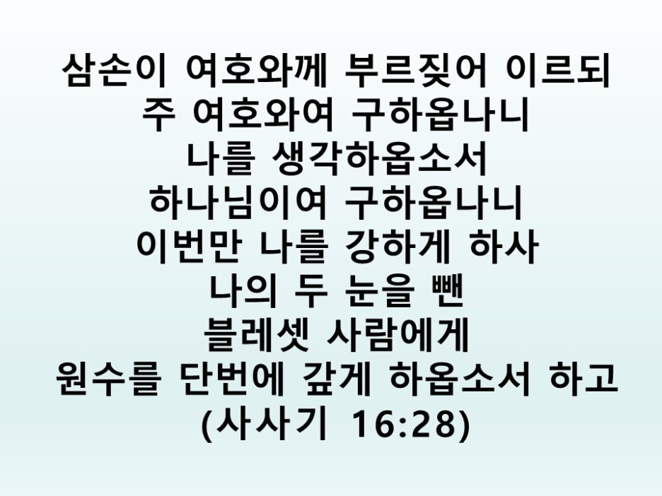 나의 두 눈을 뺀 블레셋 사람에게 원수를 단번에 갚게 하옵소서 하고