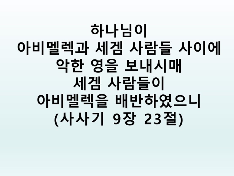 세겜이 아비멜렉을 배반하게 하여 70형제들을 살해한 그의 죄악을 심판하십니다.